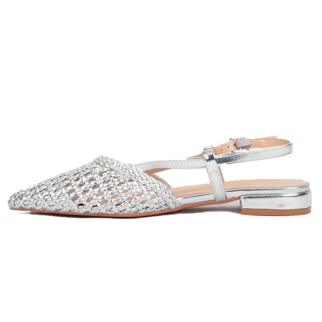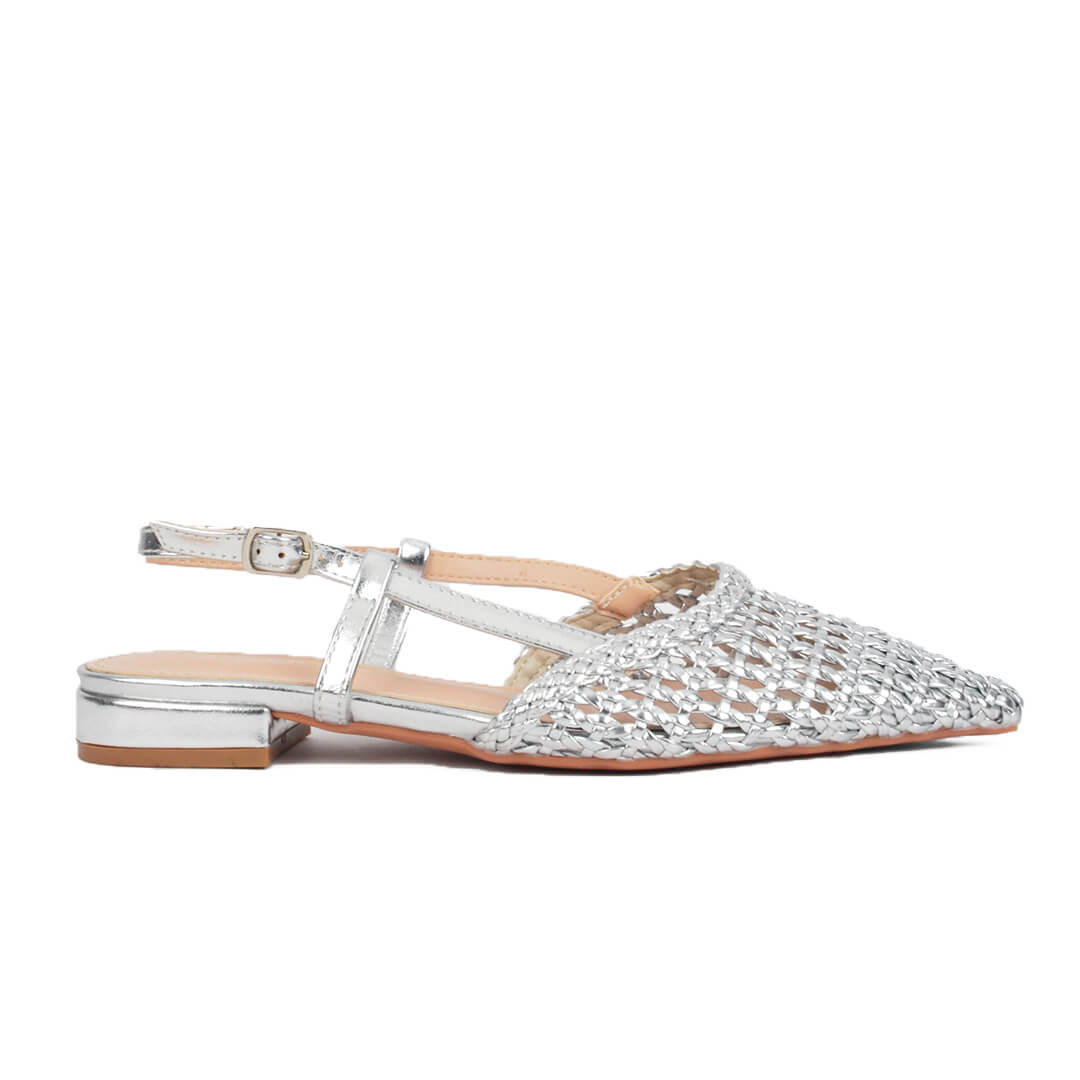 Αρχική σελίδα Παπούτσια Flats Ασημί γυναικείο flat open-heel με πλεξούδα