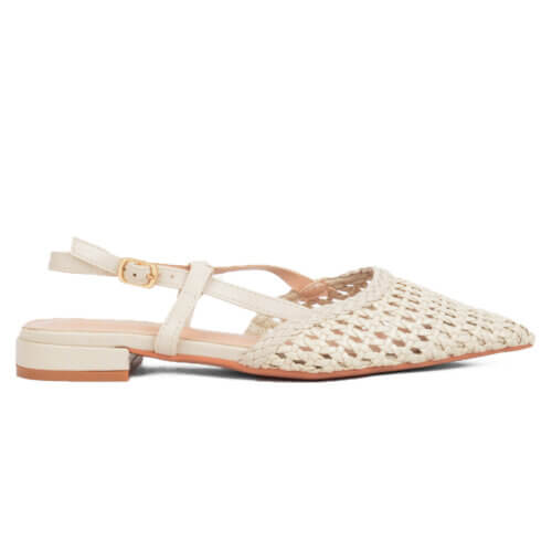 Γυναικείο flat slingback. Η φόρμα της είναι κανονική, οπότε επιλέγουμε κανονικά του νούμερό μας. Διαθέτει μαξιλάρακι στο κάτω μέρος για πιο μαλακό και άνετο πάτημα. Ιδανική επιλογή για όλη μέρα.