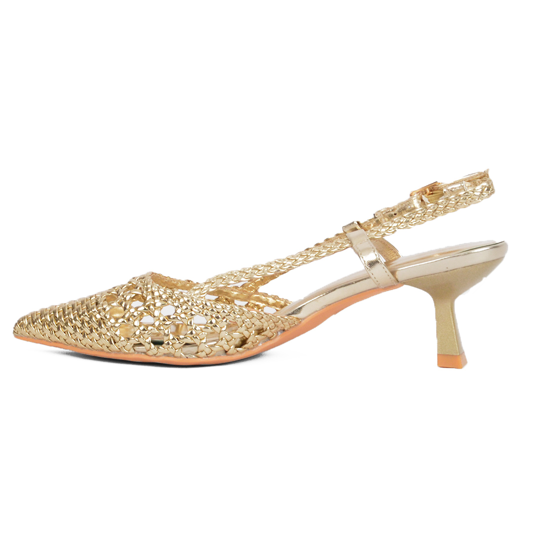 Αρχική σελίδα Παπούτσια Γόβες Χρυσό γυναικείο open-heel με σχέδιο πλεξούδα και τόκα