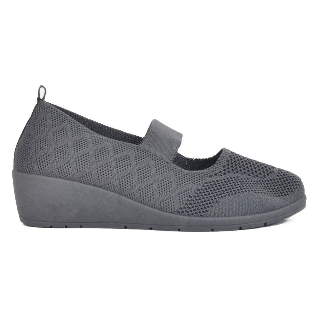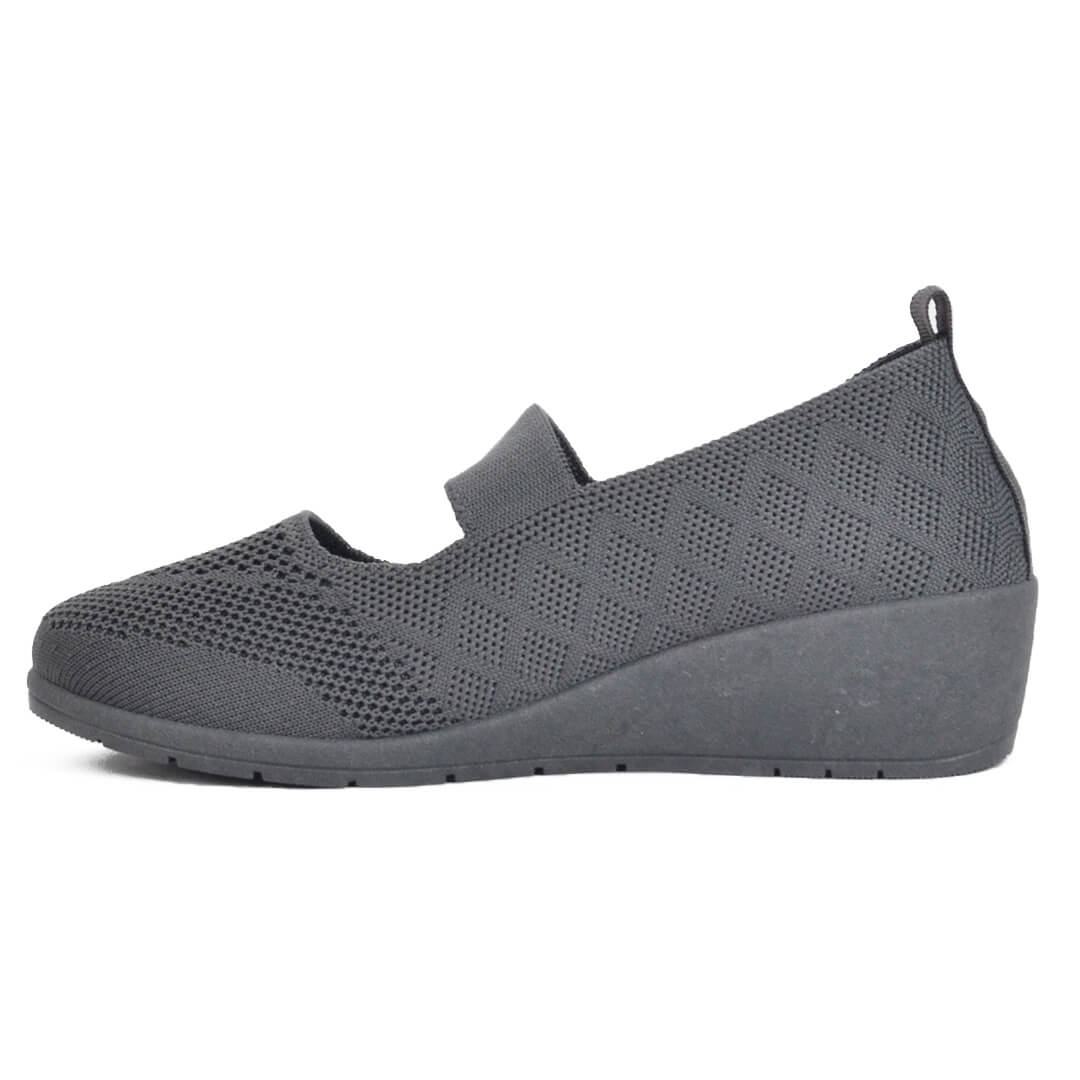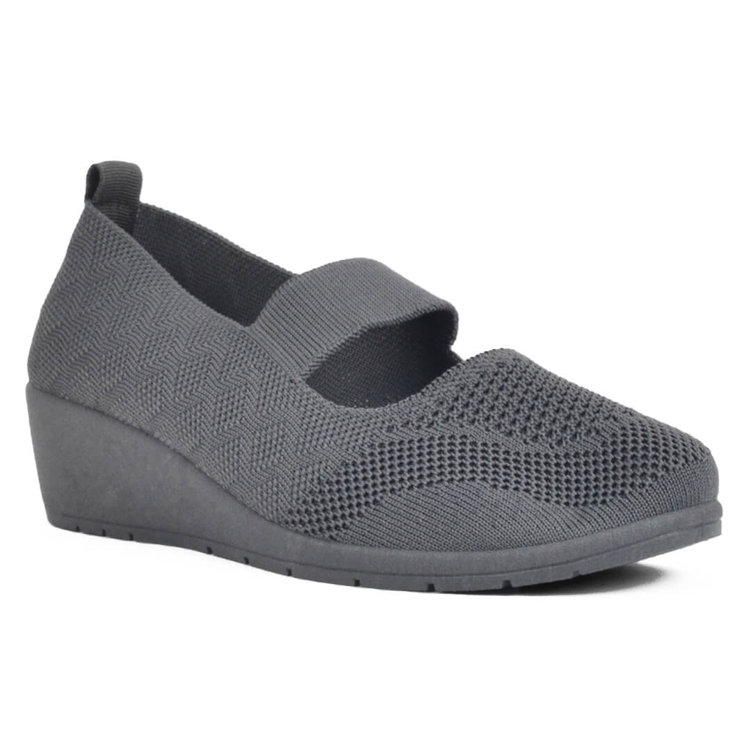 Γκρι γυναικεία ανατομική υφασμάτινη πλατφόρμα με λάστιχο στο κουτεπιέ
