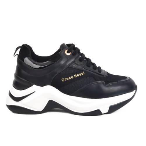Μαύρο γυναικείο δίσολο sneaker με λευκές λεπτομέρειες €33.00