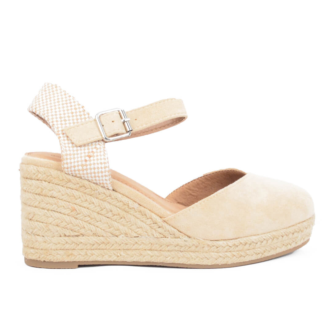 Γυναικεία εσπαντρίγια. Η φόρμα της είναι κανονική, οπότε επιλέγουμε κανονικά του νούμερό μας. Κατασκευασμένη με ελαστικά υλικά αγκαλιάζει και προσαρμόζεται ακριβώς πάνω στο πόδι μας. Η σόλα τους είναι στα 8 εκατοστά πίσω και 2 εκατοστά μπροστά. Ιδανική επιλογή για ανοιξιάτικες εμφανίσεις.