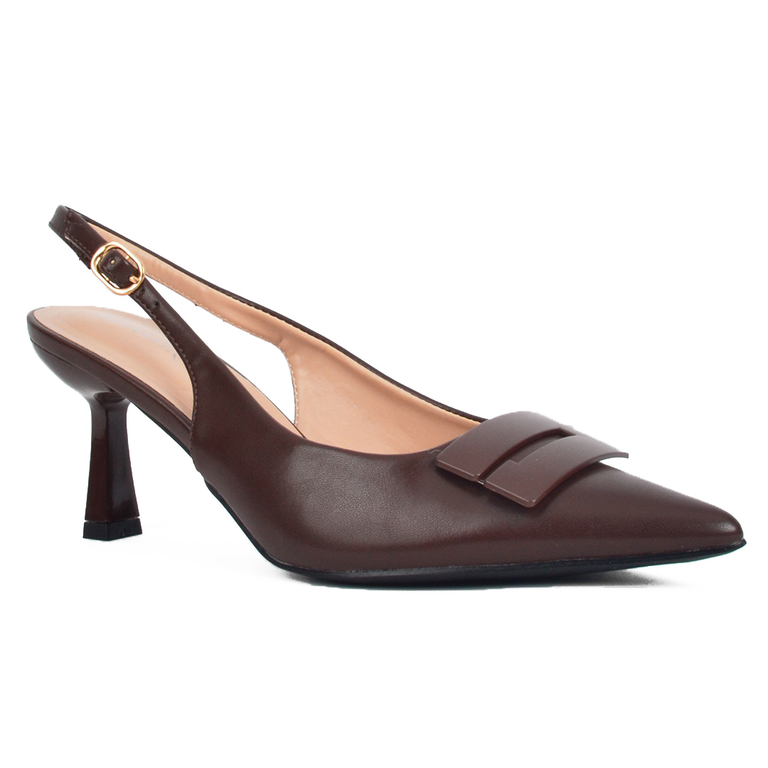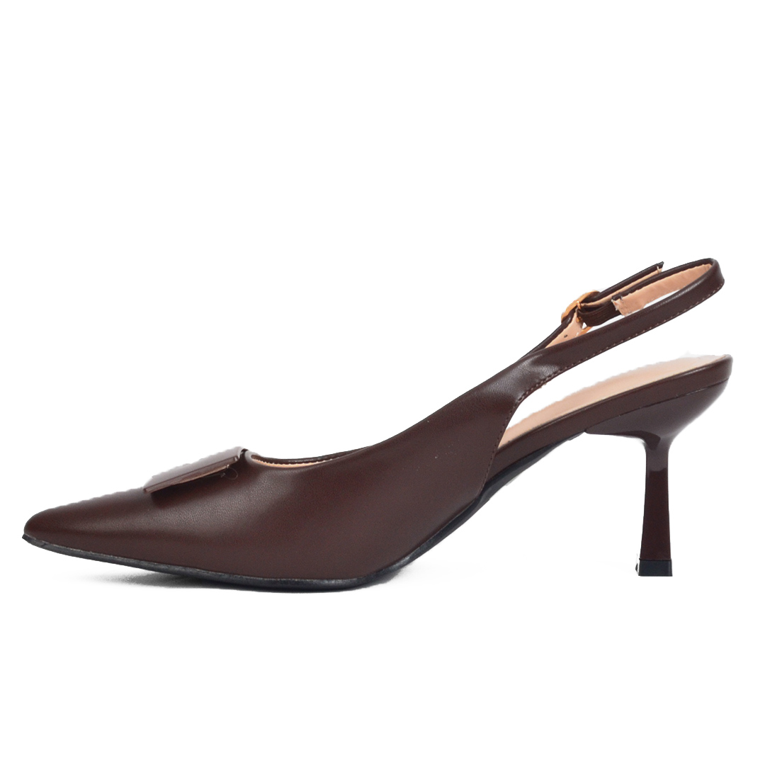 Γυναικείο open-heel με τακούνι. Το τακούνι τους είναι στα 7 εκατοστά. Η φόρμα της είναι κανονική και την επιλέγουμε κανονικά στο νούμερο μας. Ιδανική για chic εμφανίσεις.