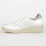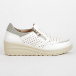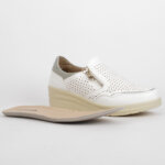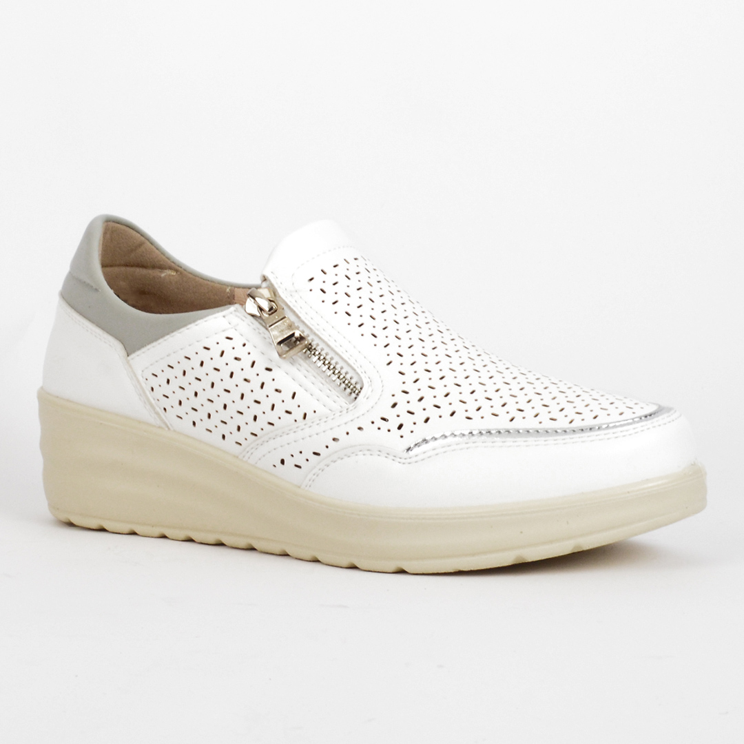 Λευκό γυναικείο ανατομικό τρυπητό ραφτό παπούτσι με φερμουάρ και λάστιχο