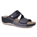 Μαύρη γυναικεία ανατομική παντόφλα με χράτς. Ο πάτος τους είναι δερμάτινος και διαθέτει ειδικό gel ενίσχυσης για πολύ μαλακό και άνετο πάτημα. Η ειδικά σχεδιασμένη ανατομική σόλα τους είναι στους 5 πόντους πίσω με 2 πόντους μπροστά, προσφέρει έτσι την κατάλληλη κλίση και ταυτόχρονα απορροφά όλους τους κραδασμούς. Ιδανική επιλογή για όλη την ημέρα και για πολύωρη ορθοστασία.
