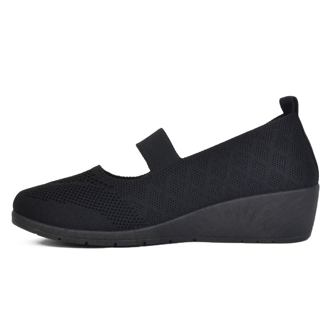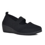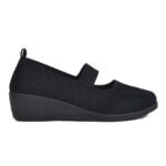Μαύρη γυναικεία ανατομική υφασμάτινη πλατφόρμα με λάστιχο στο κουτεπιέ