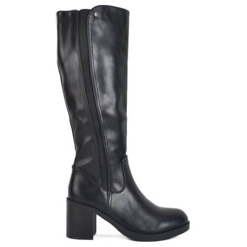 Μαύρη γυναικεία μπότα με τακούνι και λάστιχο στην μέση