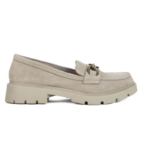 Μπεζ soft δερμάτινο γυναικείο μοκασίνι με χρυσό διακοσμητικό €29.90