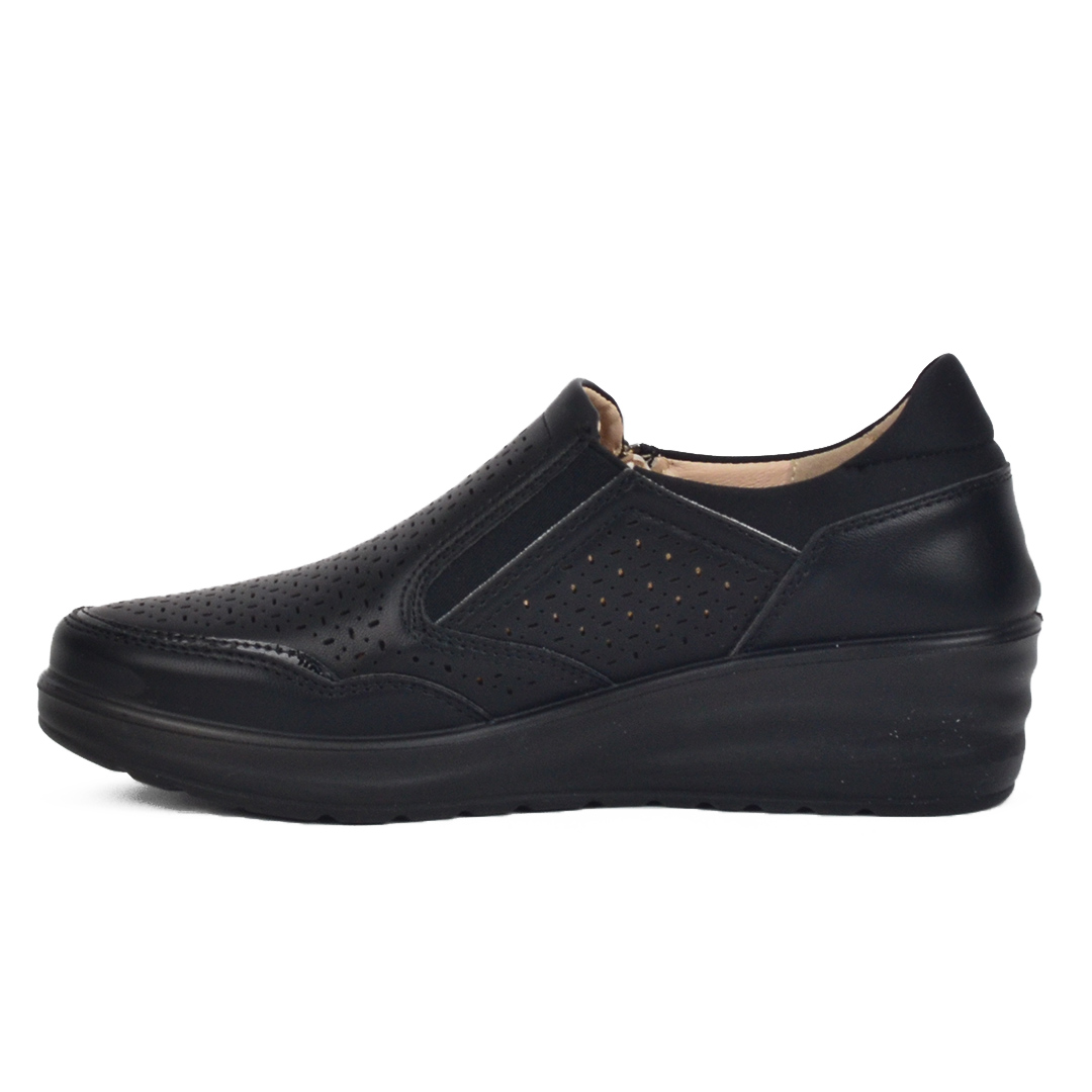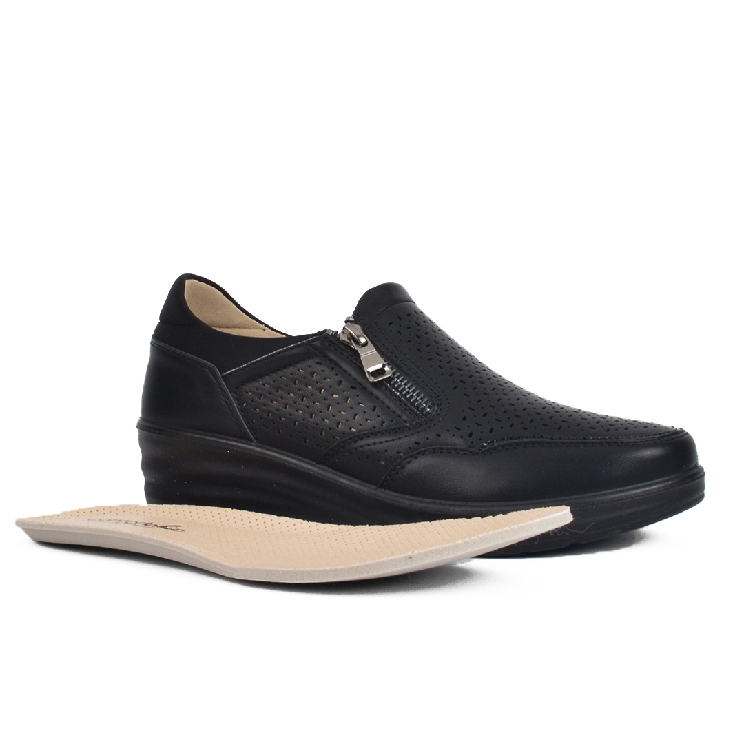 Αρχική σελίδα Παπούτσια Comfort/Ανατομικά Μαύρο γυναικείο ανατομικό τρυπητό ραφτό παπούτσι με φερμουάρ και λάστιχο