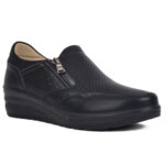 Μαύρο γυναικείο ανατομικό τρυπητό ραφτό παπούτσι με φερμουάρ και λάστιχο