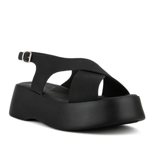 Μαύρο γυναικείο χιαστί flatform πέδιλο