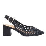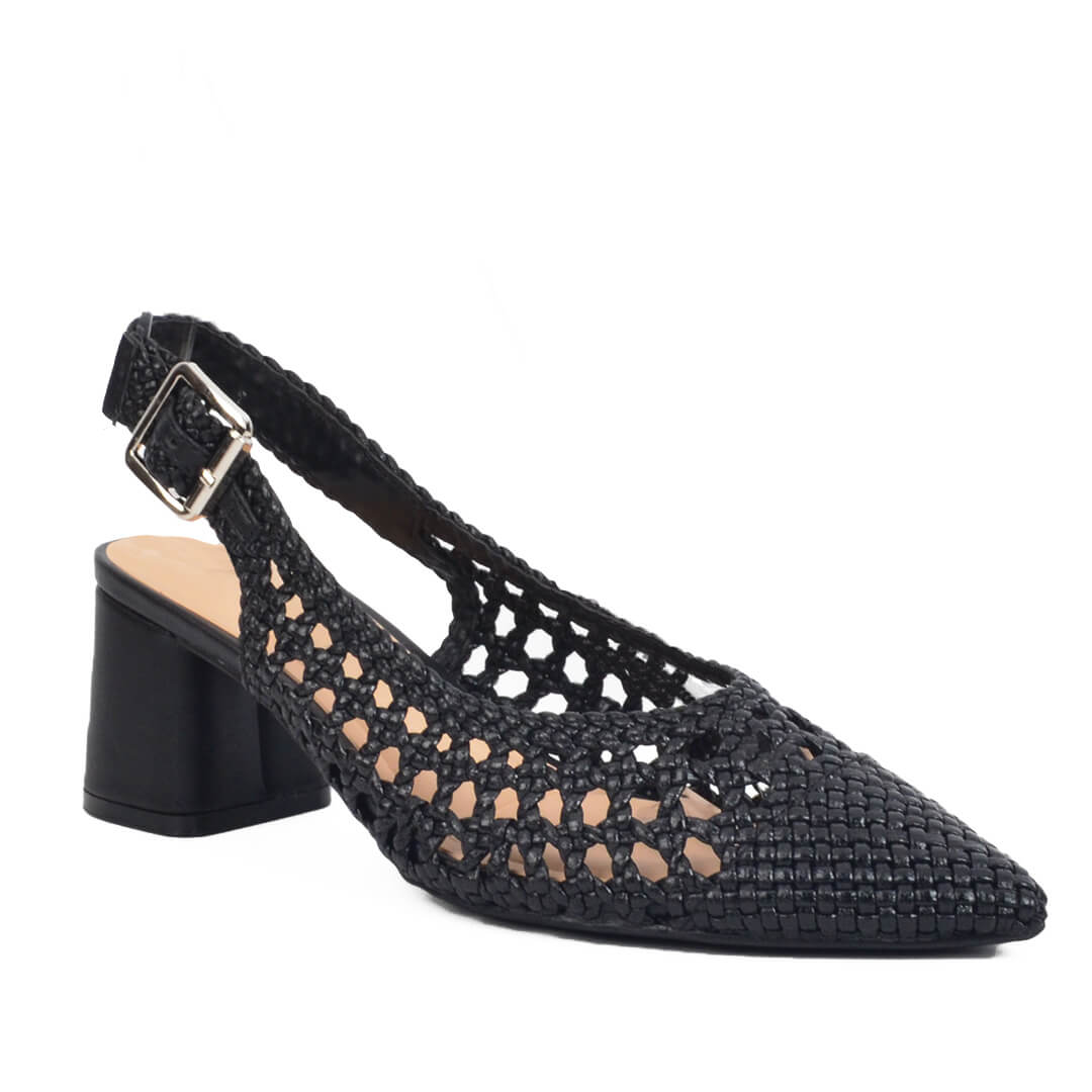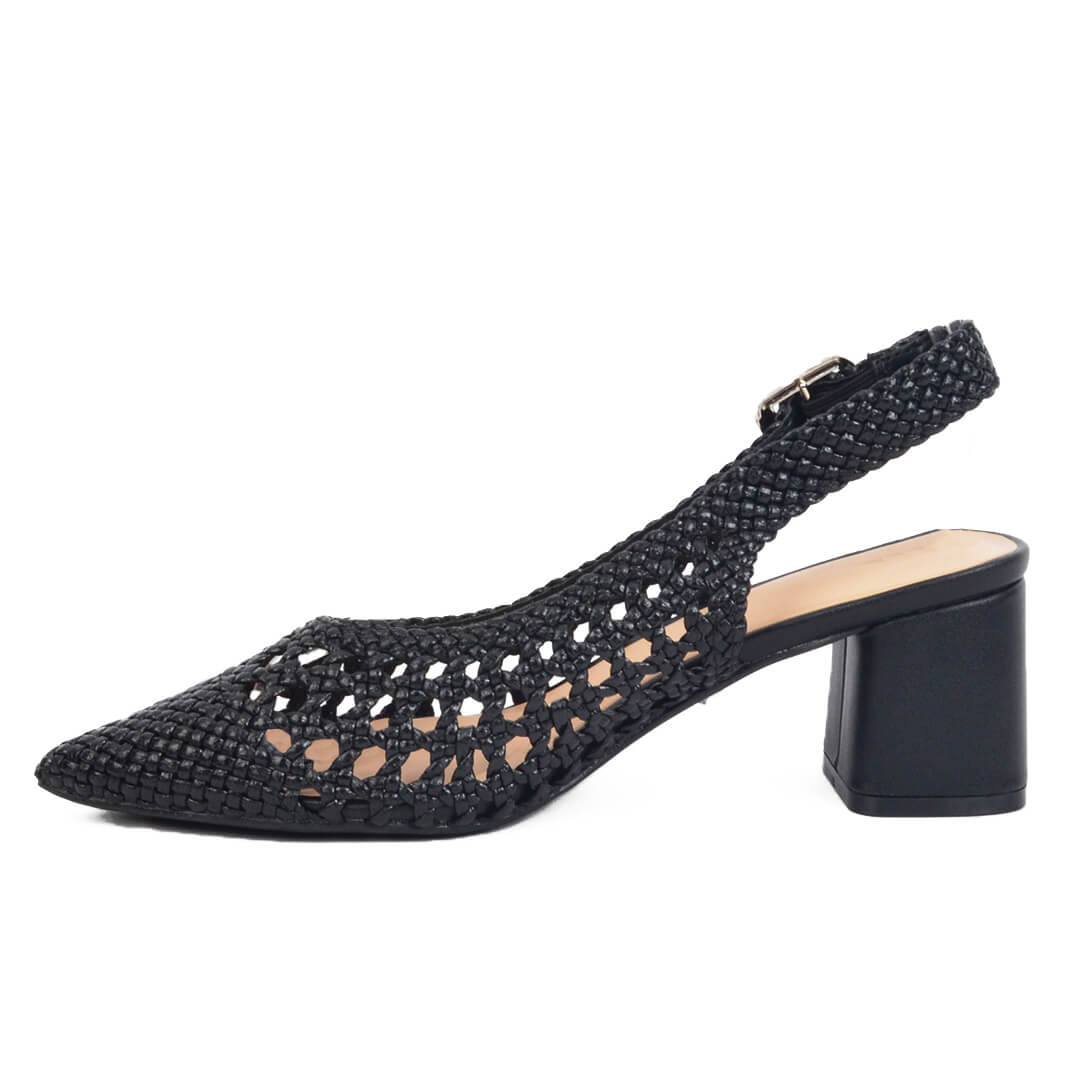 Μαύρο γυναικείο slingback με πλεξούδα και τακούνι