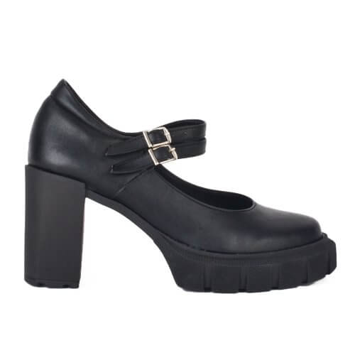 Γυναικείο mary-jane με τακούνι, κατασκευής εργοστασίου μας. Το υλικό του είναι πλήρως αδιάβροχο ελαστικό τεχνόδερμα. Το ύψος του είναι στους 8 πόντους πίσω και 2 πόντους μπροστά. Η σόλα τους είναι από θερμολάστιχο με αποτέλεσμα να είναι πολύ άνετη και ελαφριά.  Η φόρμα τους είναι κανονική οπότε επιλέγουμε κανονικά το νούμερο μας. Ιδανική επιλογή από το πρωί μέχρι το βράδυ.