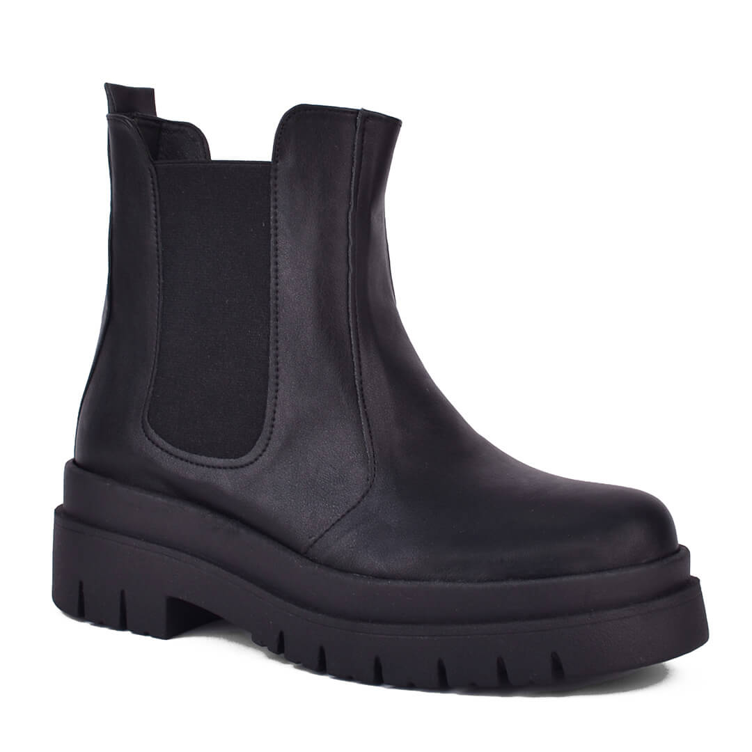 Μαύρο γυναικείο τρακτερωτό μποτάκι με λάστιχο