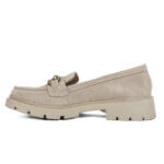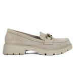 Μπεζ soft δερμάτινο γυναικείο μοκασίνι με χρυσό διακοσμητικό