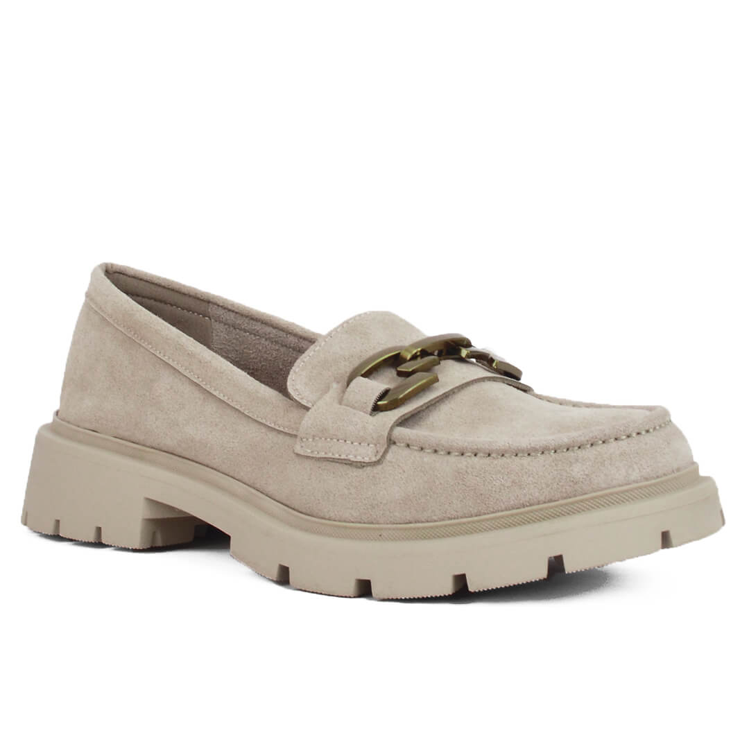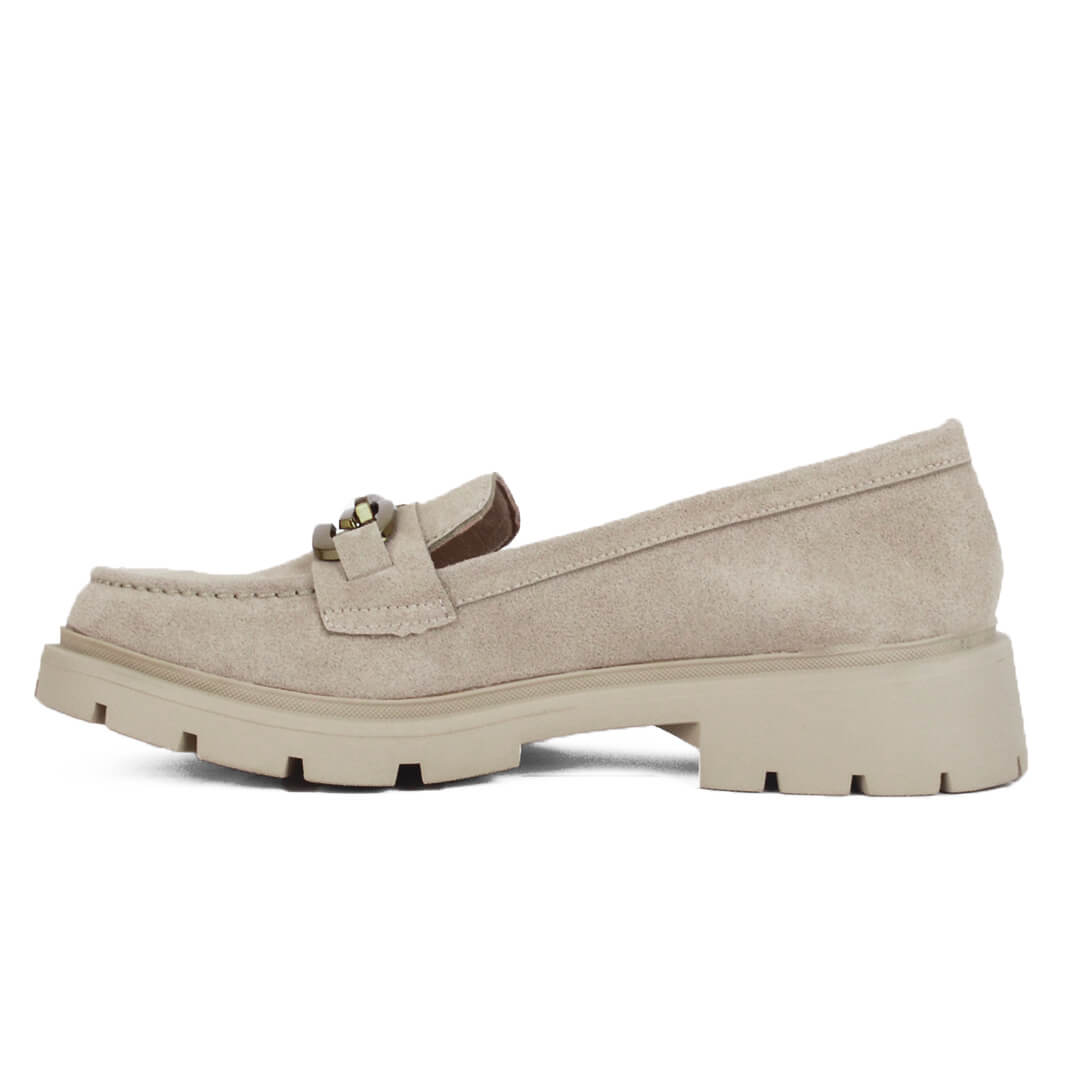 Αρχική σελίδα Παπούτσια Loafers Μπεζ soft δερμάτινο γυναικείο μοκασίνι με χρυσό διακοσμητικό