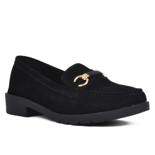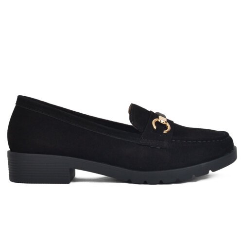Μαύρο γυναικείο δερμάτινο μοκασίνι με διακοσμητική λεπτομέρεια