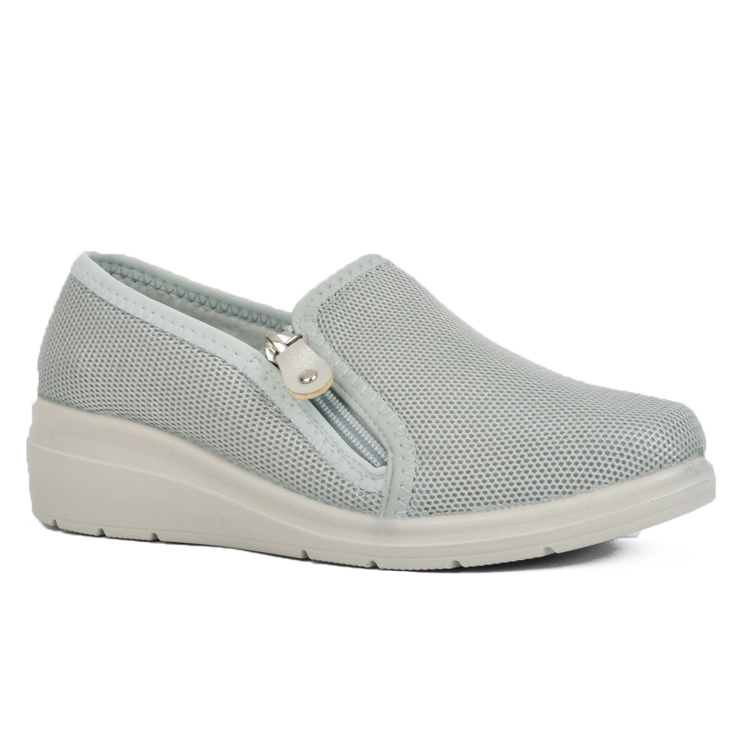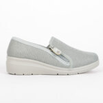 Γυναικείο υφασμάτινο παπούτσι. Το ύψος του είναι στους 4 πόντους με 1,5 πόντο φιάπα, καθιστώντας το άνετο και ξεκούραστο και προσφέρει την κατάλληλη κλίση για την μέση. Η σόλα τους είναι από θερμολάστιχο με αποτέλεσμα να είναι πολύ άνετη και πλήρως αντικραδασμική. Διαθέτει λάστιχο στο πλάι και φερμουάρ για να μπορεί να προσαρμόζεται σε κάθε πόδι. Η φόρμα τους είναι κανονική οπότε επιλέγουμε κανονικά το νούμερο μας. Ιδανική επιλογή από το πρωί μέχρι το βράδυ.