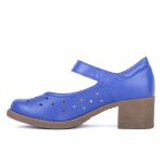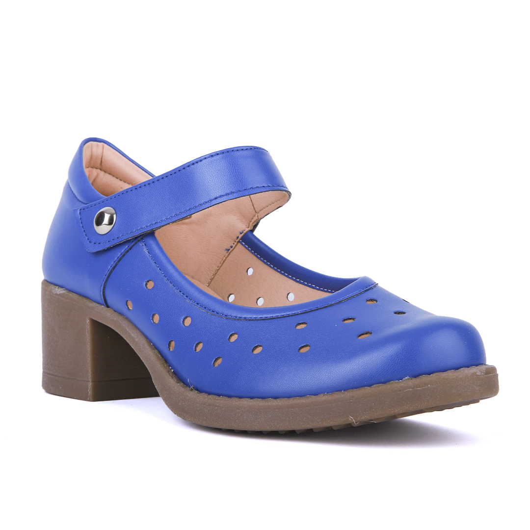 Μπλε τρυπητό γυναικείο ανατομικό παπούτσι με χρατς και τακούνι