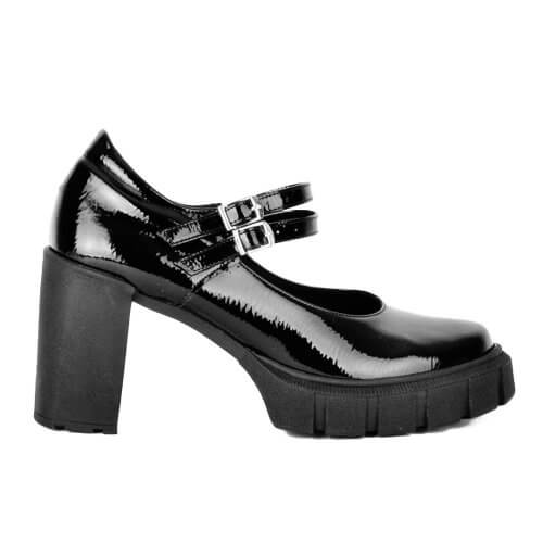 Μαύρο λουστρίν γυναικείο mary jane με τακούνι και διπλά λουράκια