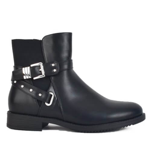 (BIG SIZES) Μαύρο γυναικείο μποτάκι με διακοσμητικά και λάστιχο