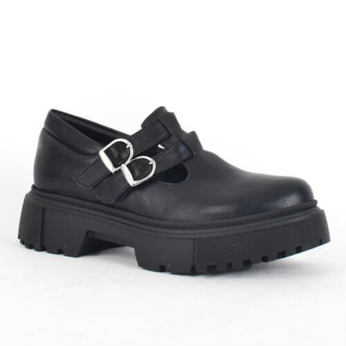 Μαύρο γυναικείο mary jane με διπλό λουράκι στο κουτεπιέ
