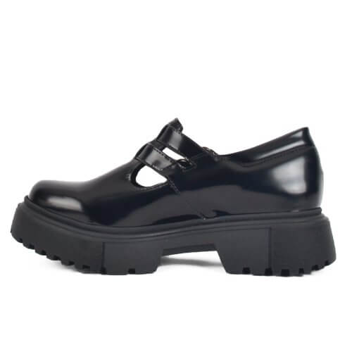 Μαύρο ματ γυναικείο mary jane σε τρακτερωτή σόλα με ένα λουράκι