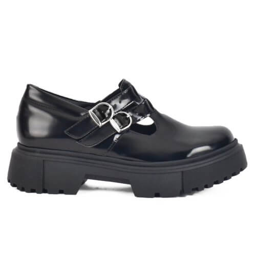 Μαύρο λουστρίν γυναικείο mary jane με διπλό λουράκι στο κουτεπιέ