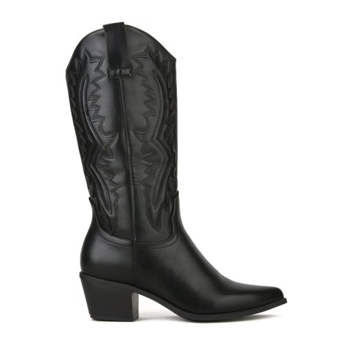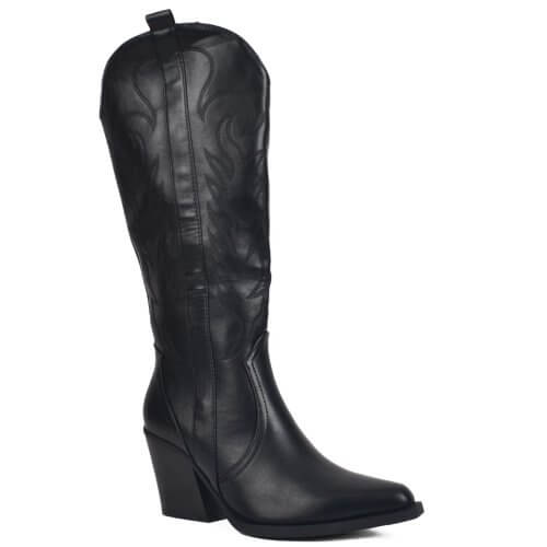 Μαύρη γυναικεία cowboy μπότα με τακούνι