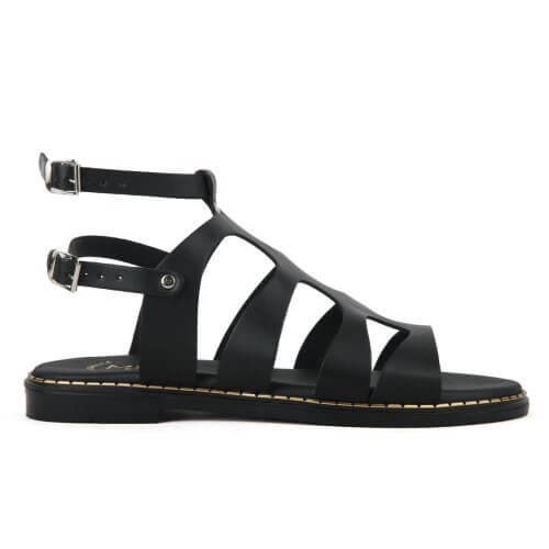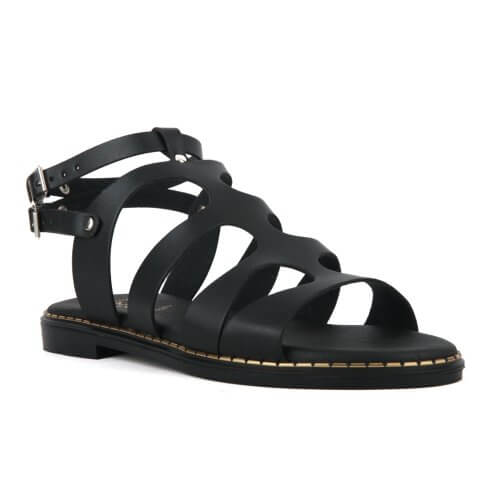 Μαύρο γυναικείο flat πέδιλο με λουράκια