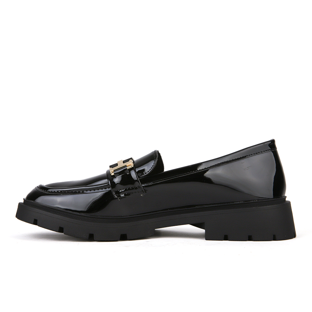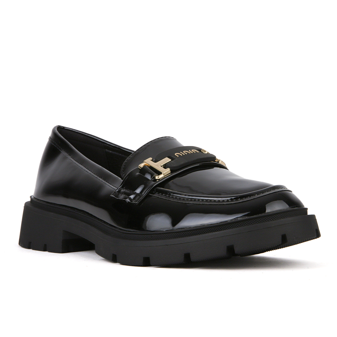 Αρχική σελίδα Παπούτσια Loafers BIG SIZES Μαύρο γυναικείο λουστρίν μοκασίνι με διακοσμητικό