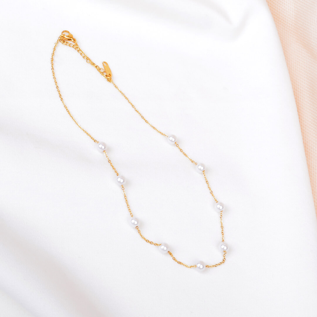 Ατσάλινο κολιέ με πέρλες.  Η περίμετρος του είναι 40cm (+5cm προέκταση).  Φόρεσε το συνδυαστικά με τα υπόλοιπα κολιέ της συλλογής και δημιούργησε τα δικά σου layerings. Σε περίπτωση που επιθυμείτε άλλο μήκος στην αλυσίδα, μπορείτε να το σημειώσετε στις παρατηρήσεις.