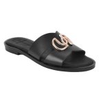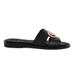 Δερμάτινο μαύρο σανδάλι με λεπτομέρεια