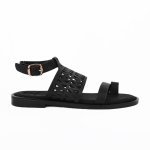 Flat μαύρο πέδιλο με δάχτυλο και τρυπητό σχέδιο