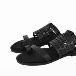 Flat πέδιλο με δάχτυλο και τρυπητό σχέδιο, κατασκευής εργοστασίου μας.  Η φόρμα τους είναι κανονική προς άνετη οπότε επιλέγουμε το νούμερό μας. Το υλικό τους είναι ελαστικό τεχνόδερμα και εσωτερικά δερμάτινο. Η σόλα τους είναι από θερμολάστιχο με αποτέλεσμα να είναι πολύ ελαφριά και άνετη στο περπάτημα. Ο πάτος τους είναι ενισχυμένος για ακόμα πιο μαλακό πάτημα.