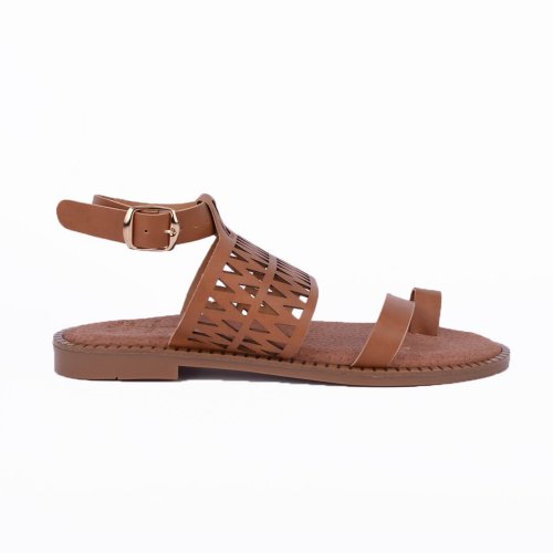 Flat πέδιλο με δάχτυλο και τρυπητό σχέδιο, κατασκευής εργοστασίου μας.  Η φόρμα τους είναι κανονική προς άνετη οπότε επιλέγουμε το νούμερό μας. Το υλικό τους είναι ελαστικό τεχνόδερμα και εσωτερικά δερμάτινο. Η σόλα τους είναι από θερμολάστιχο με αποτέλεσμα να είναι πολύ ελαφριά και άνετη στο περπάτημα. Ο πάτος τους είναι ενισχυμένος για ακόμα πιο μαλακό πάτημα.
