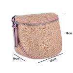 Πλεκτή ψάθινη τσάντα με nude λουράκι και nude λεπτομέρειες. Διαθέτει μια κεντρική θήκη για τα αγαπημένα σας αντικείμενα και μια μικρή εσωτερικά και εξωτερικά. Ιδανικό για όλες τις ώρες. Διαστάσεις: Μήκος: 20εκ, Ύψος: 19εκ. Πλάτος: 10εκ.