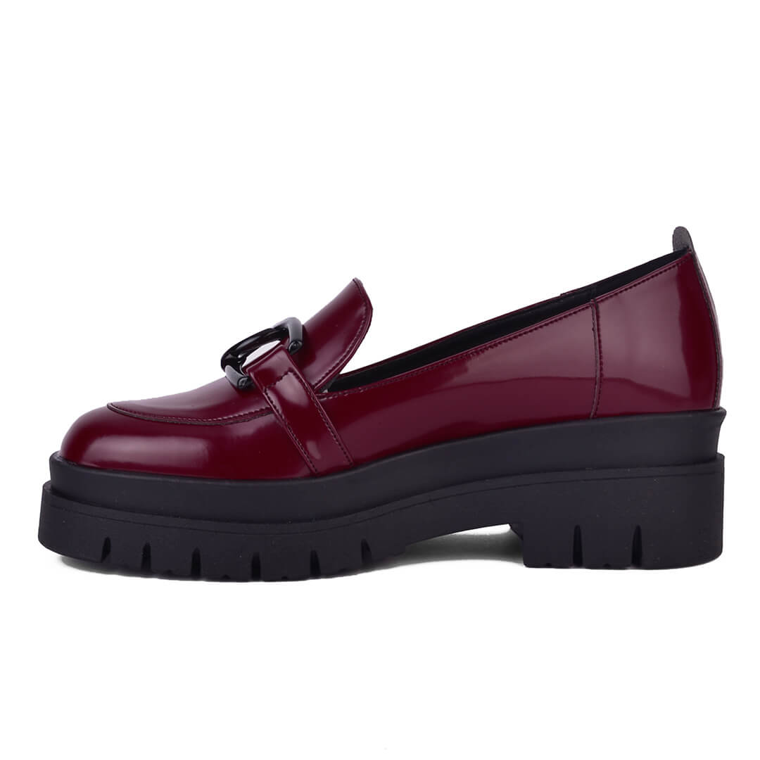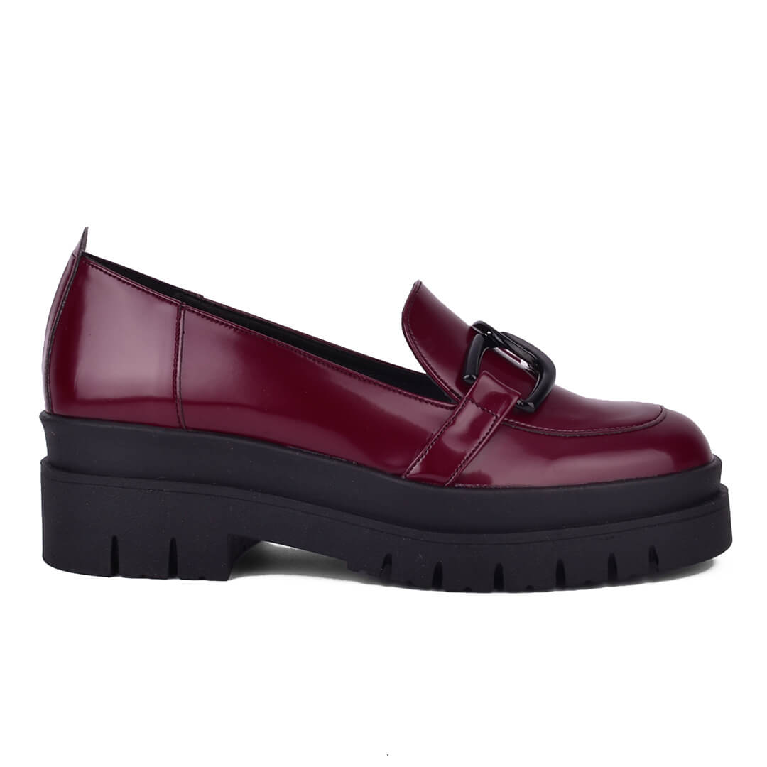 Αρχική σελίδα Παπούτσια Loafers Γυναικείο μπορντό μοκασίνι με μαύρο διακοσμητικό