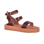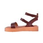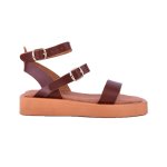 Καφέ δερμάτινο flatform πέδιλο με τόκες