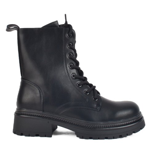 Γυναικείο αρβυλάκι. Διαθέτει λειτουργικά κορδόνια και λειτουργικό φερμουάρ στην εσωτερική πλευρά του για πανεύκολη χρήση. Το υλικό τους είναι πλήρως αδιάβροχο τεχνόδερμα. Το ύψος του τακουνιού είναι στους 3,5 πόντους και μπροστά στους 1,5 πόντους. Το ύψος στην γάμπα είναι στους 16,5 πόντους. Η φόρμα τους είναι κανονική οπότε επιλέγουμε κανονικά το νούμερό μας.