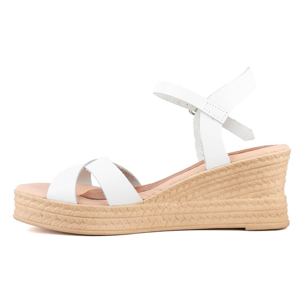 Αρχική σελίδα Παπούτσια Comfort/Ανατομικά Λευκή δερμάτινη ανατομική πλατφόρμα με λουράκια