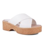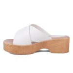Λευκή γυναικεία χιαστί παντόφλα σε τσόκαρο