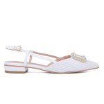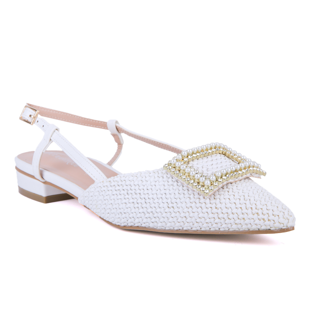 Γυναικείο flat open-heel με διακοσμητικό πέρλα. Η φόρμα τους είναι κανονική οπότε επιλέγουμε κανονικά το νούμερο μας. Ιδανικά για όλη την ημέρα