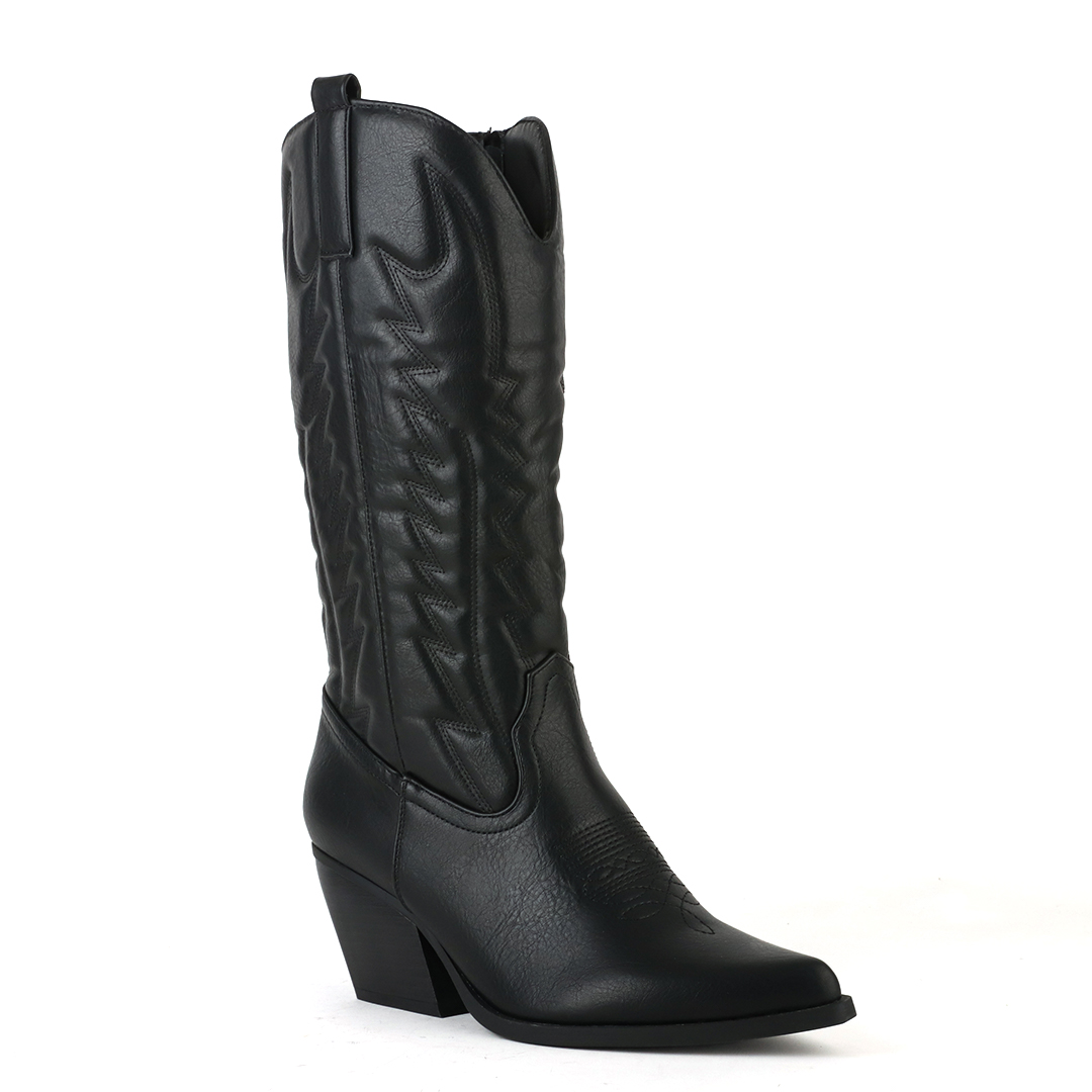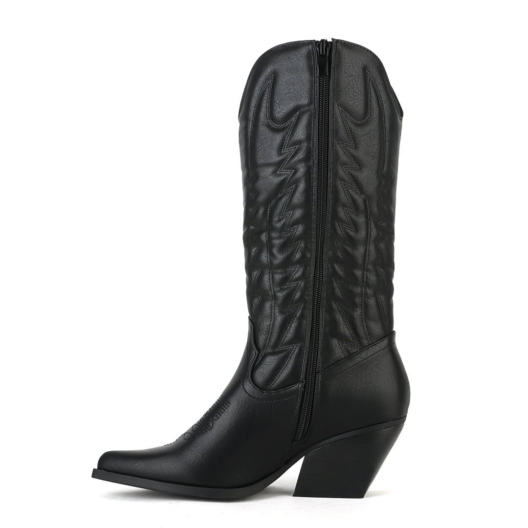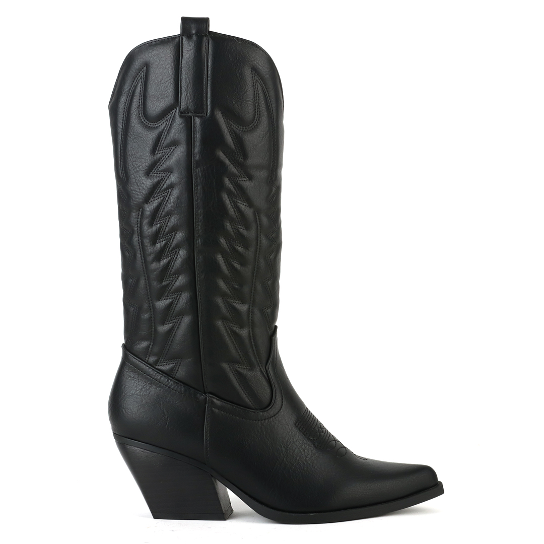 Αρχική σελίδα Παπούτσια Μπότες Μαύρη γυναικεία 3/4 cowboy μπότα με τακούνι