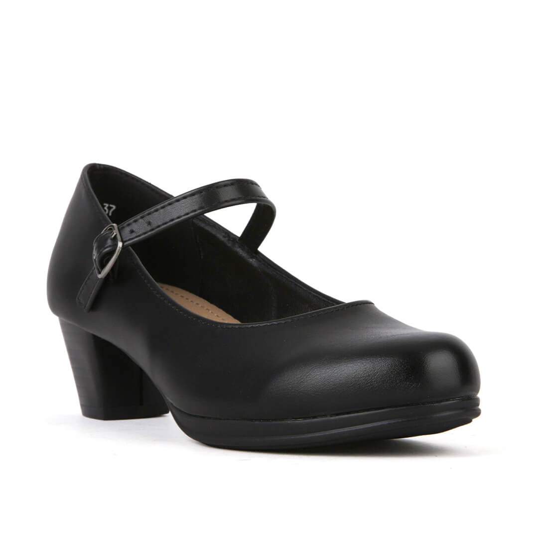 Γυναικεία χορευτική γόβα σε ματ τεχνόδερμα υλικό. Το ύψος του τακουνιού είναι στους 4,5 πόντους και διαθέτει κανονική φόρμα οπότε επιλέγουμε κανονικά το νούμερο μας. Στην μπαρέτα υπάρχει λάστιχο για να προσαρμόζεται σε όλα τα πόδια. Στο εσωτερικό διαθέτει εξτρά ενίσχυση για πάρα πολύ μαλακό πάτημα. Ιδανική για όλη την ημέρα.