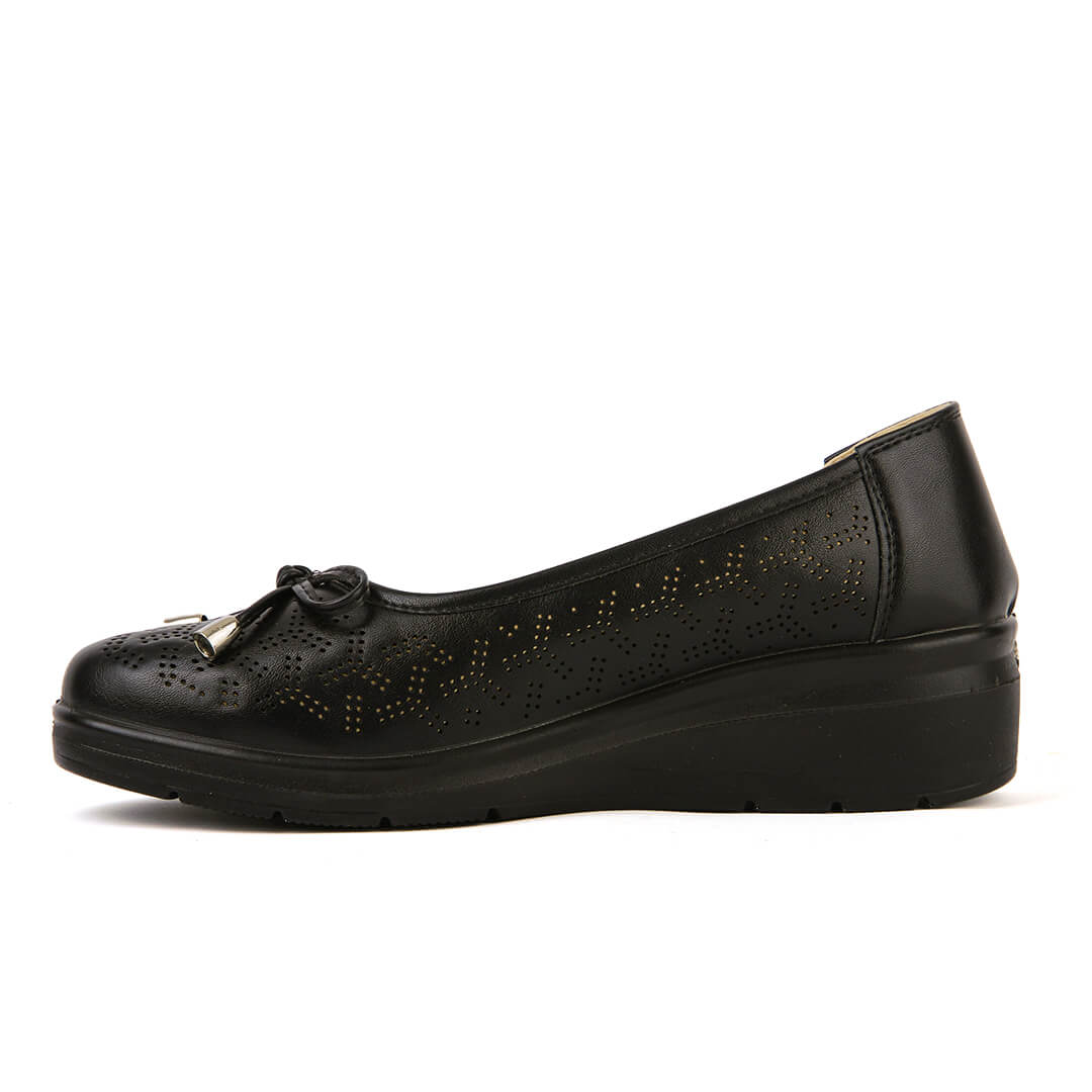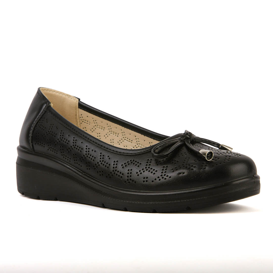 Μαύρη γυναικεία ανατομική μπαλαρίνα με φιόγκο