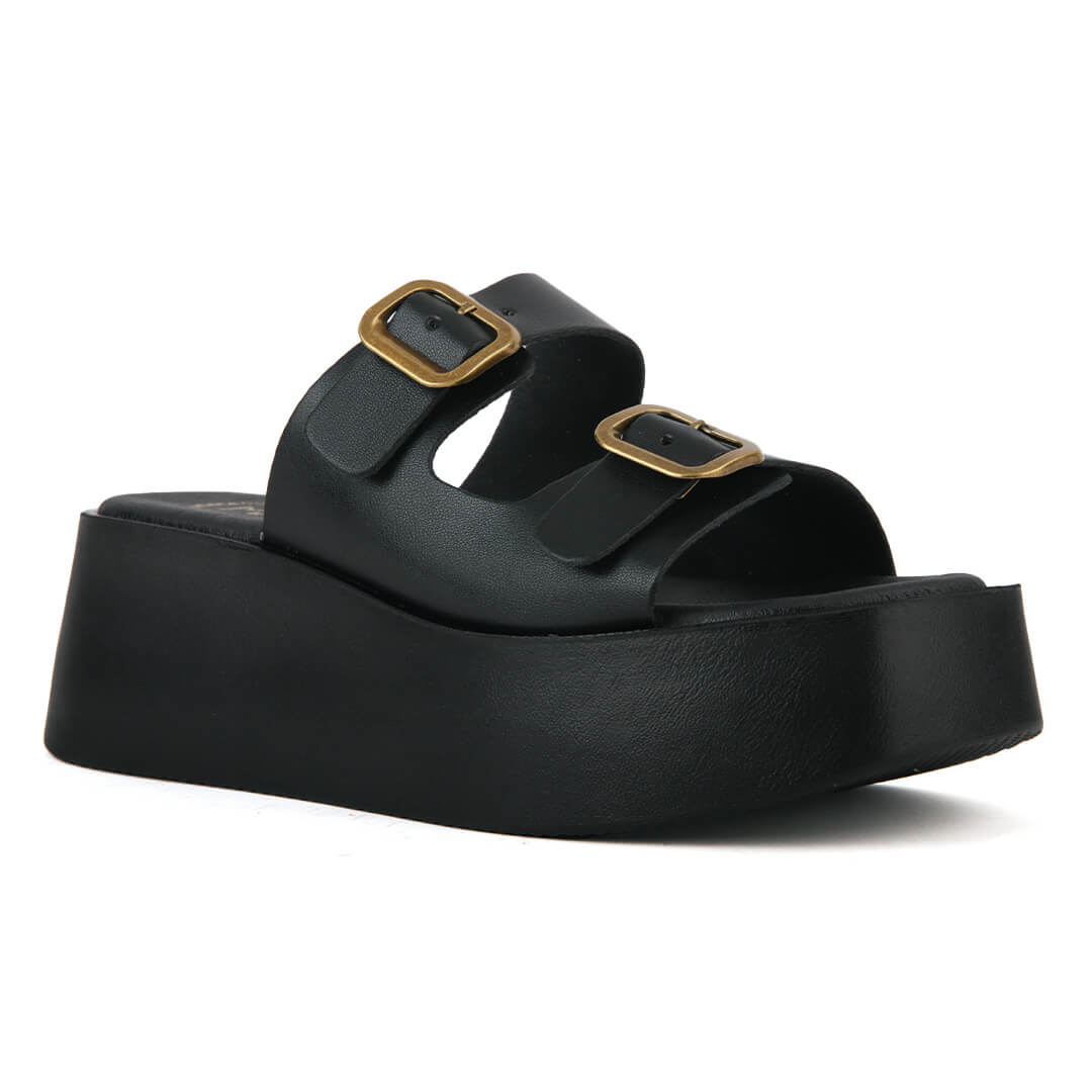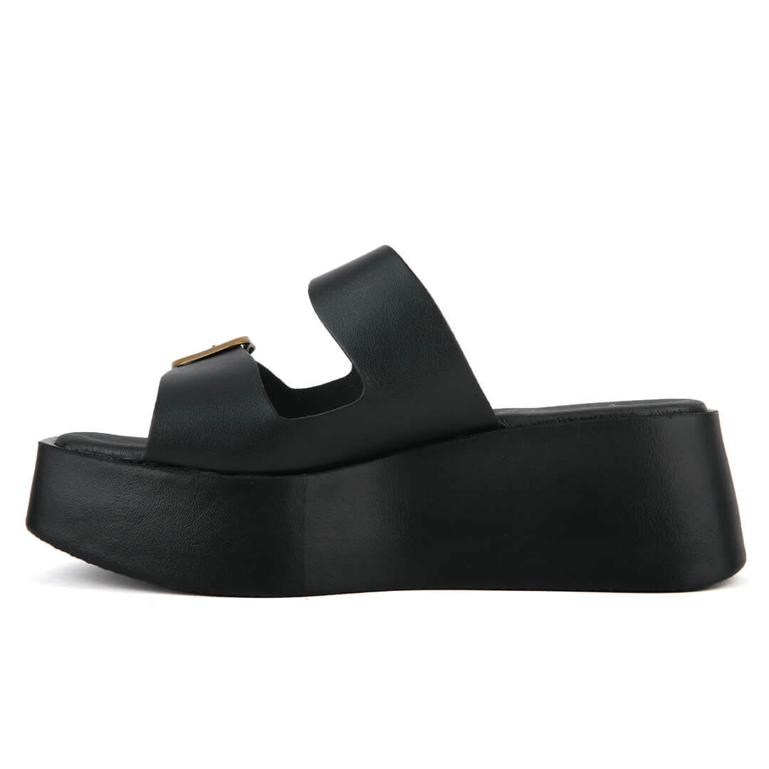 Μαύρη γυναικεία δίσολη παντόφλα με τόκες