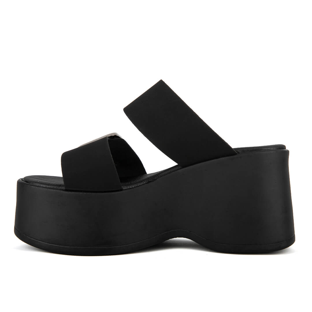 Μαύρη γυναικεία δίσολη παντόφλα με τόκες