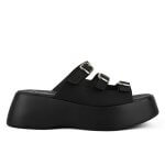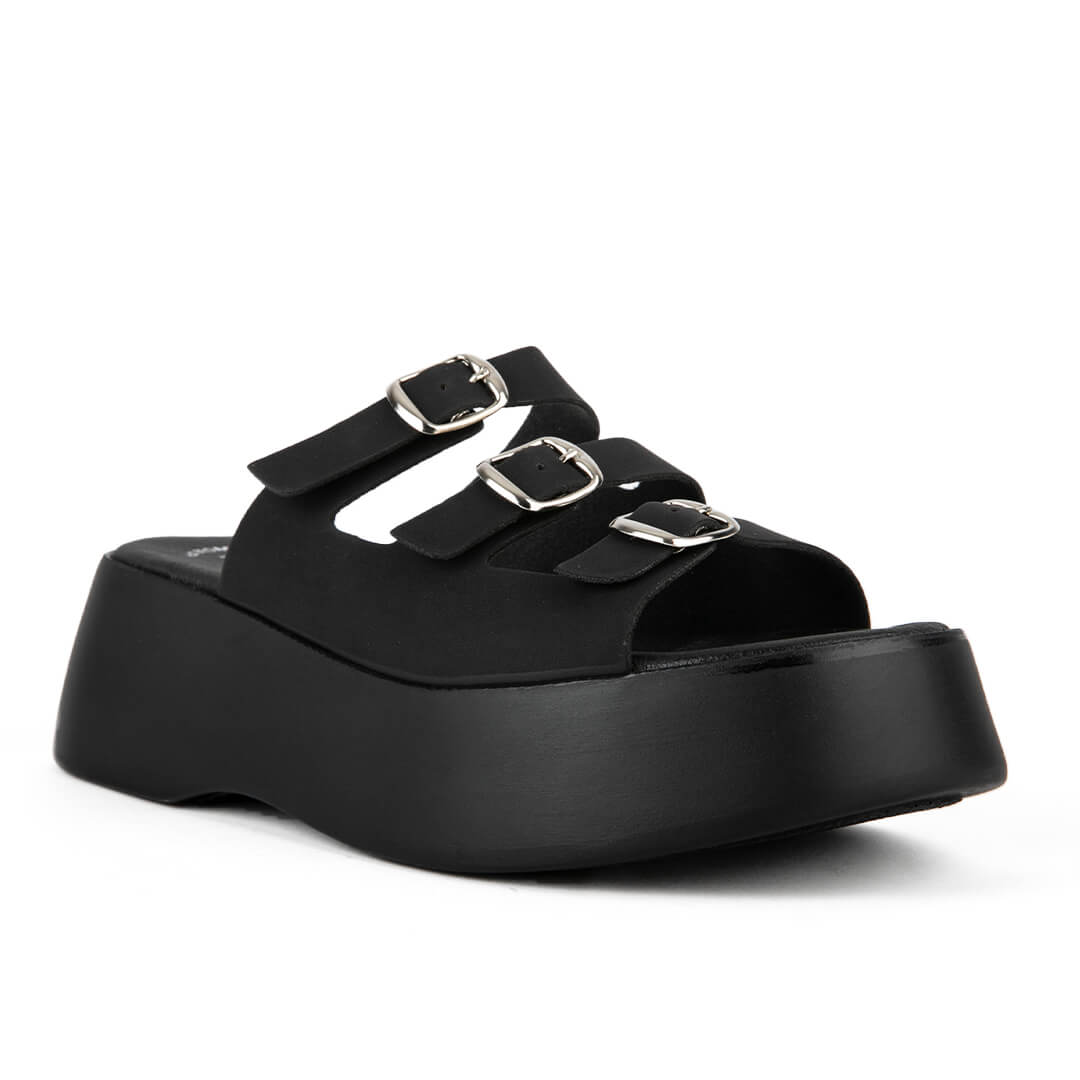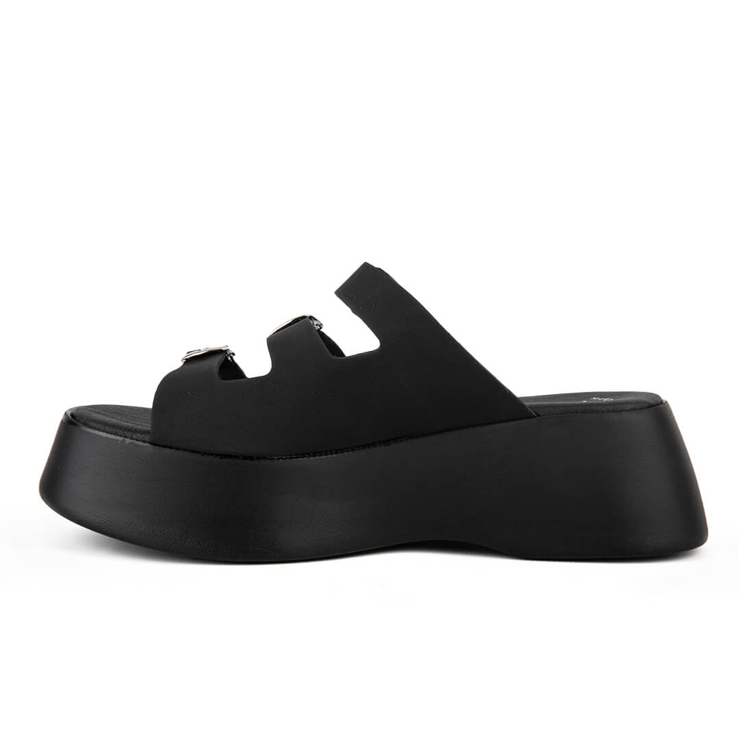 Μαύρη γυναικεία flatform παντόφλα με τόκες