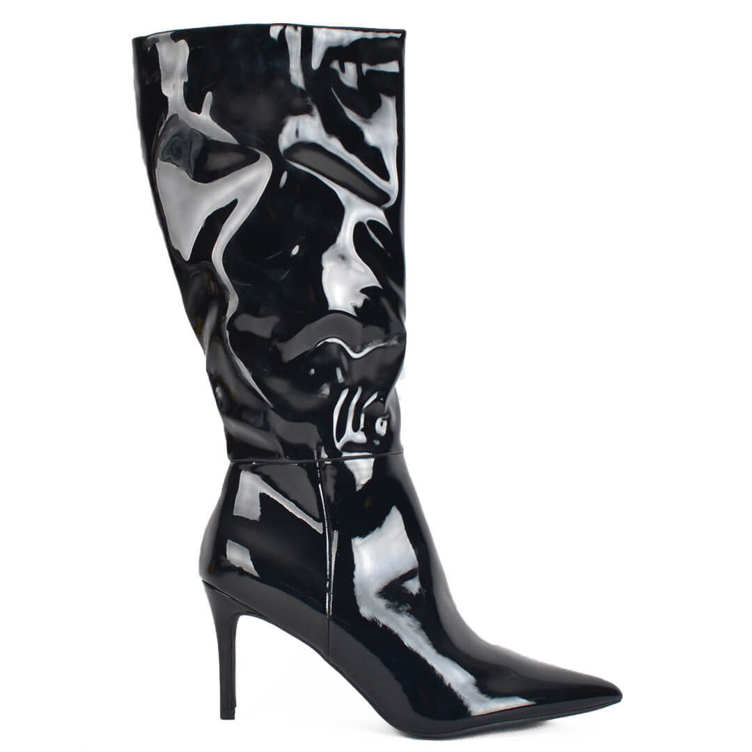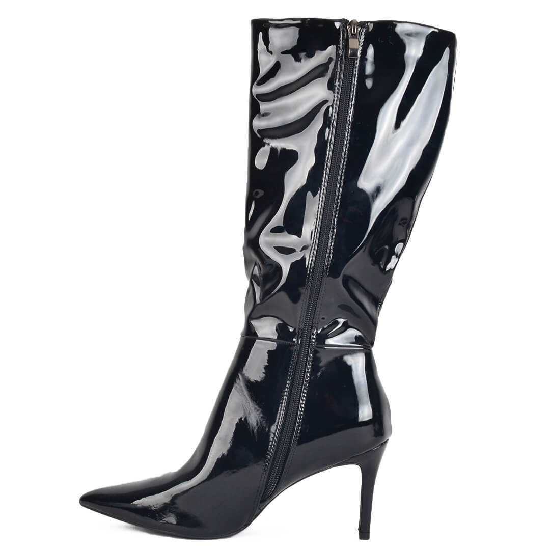 Μαύρη γυναικεία λουτρίν μπότα με λεπτό τακούνι. Το υλικό της είναι λουστρίν τεχνόδερμα πλήρως αδιάβροχο. Η φόρμα της είναι κανονική οπότε επιλέγουμε κανονικά το νούμερο μας. Το ύψος του τακουνιού είναι στους 8,5 πόντους. Το ύψος στην γάμπα είναι στους 32 πόντους. Διαθέτει στην εσωτερική πλευρά λειτουργικό φερμουάρ. Ιδανική επιλογή για βραδινές εμφανίσεις.